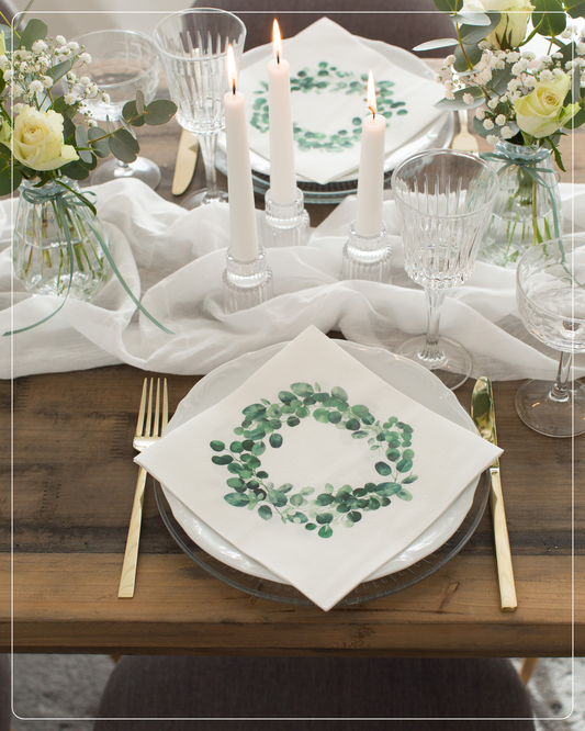 Airlaid Servietten Eukalyptus Kranz, 40 x 40 cm