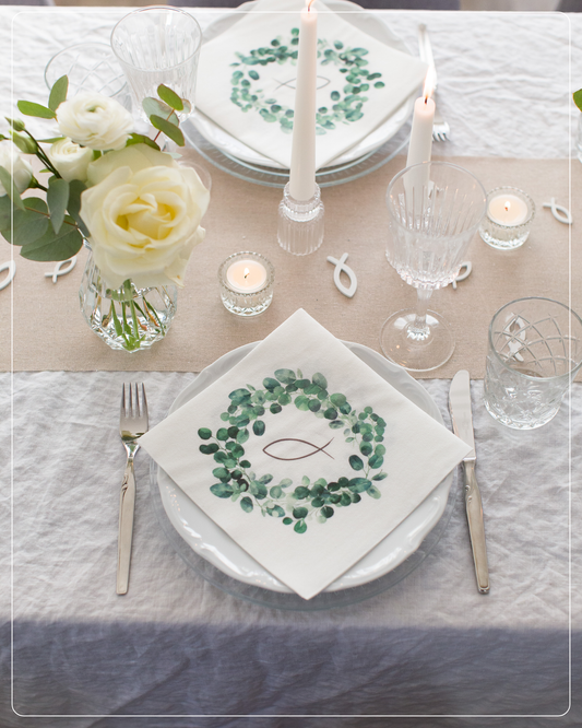 Airlaid Servietten Eukalyptus Kranz Fisch, 40 x 40 cm