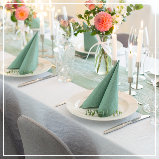 Tischdeko Set Tissue in Eukalyptus Grün und Weiß