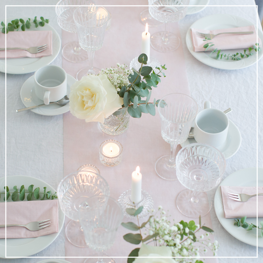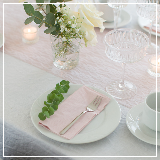 Tischdeko Set in Blush Rosé und Weiß, breite Spitze