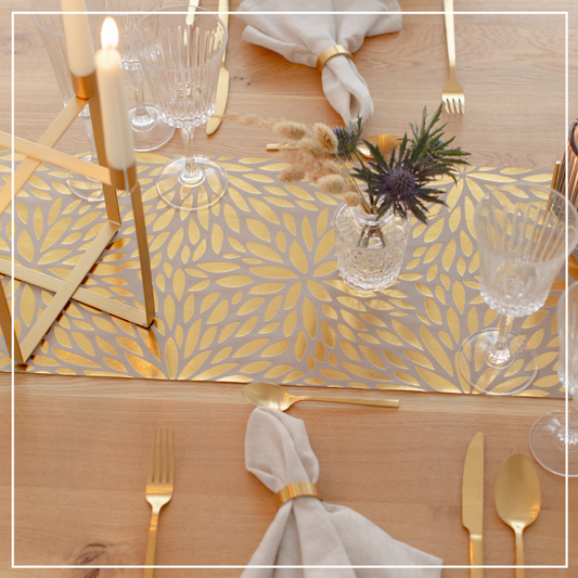 Tischdeko Set Tissue in Rauchblau und Weiß