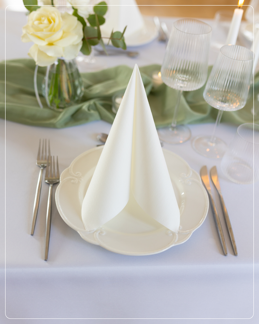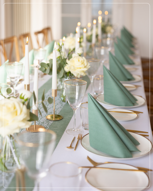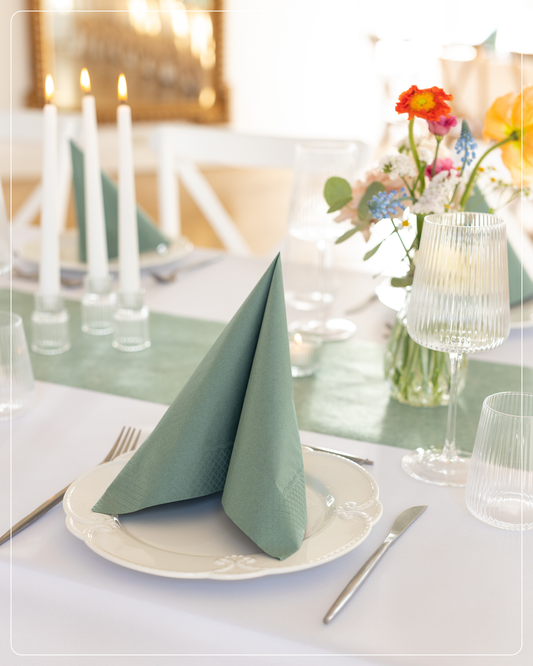 Tischdeko Set Airlaid für 50 Gäste, in Eukalyptus Grün und Weiß