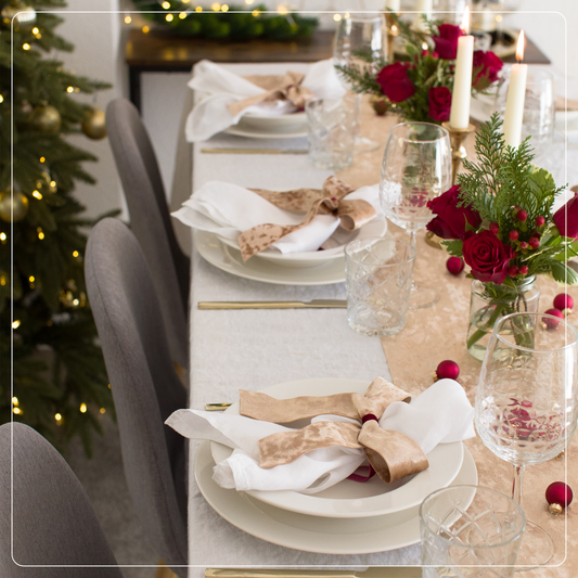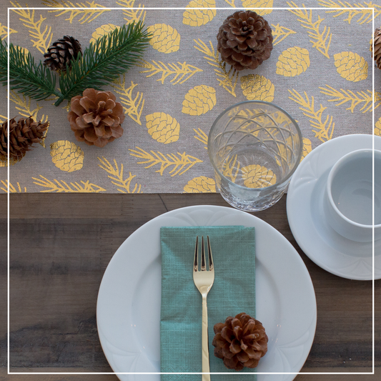 Tischläufer Natur mit goldenen Zapfen