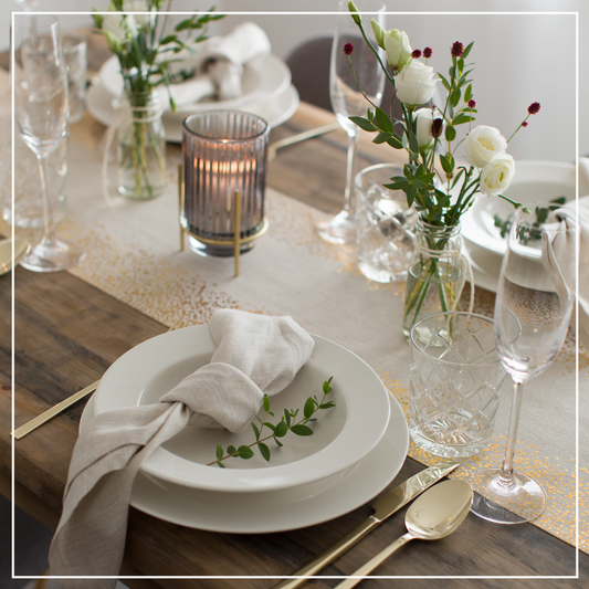 AusverkauftTischläufer Natur mit goldenen Punkten