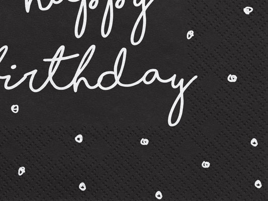 20 Servietten Happy Birthday, schwarz