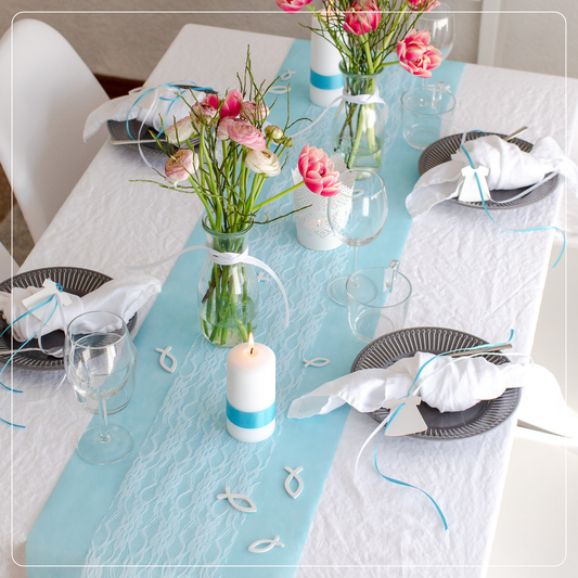 Tischdeko Set Rauchblau und Weiß