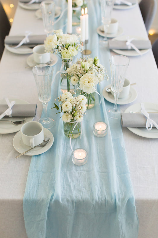 Musselin Tischläufer, Hellblau