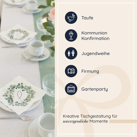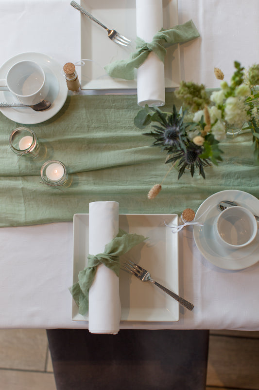 Tischdeko Set in Eukalyptus Grün und Weiß
