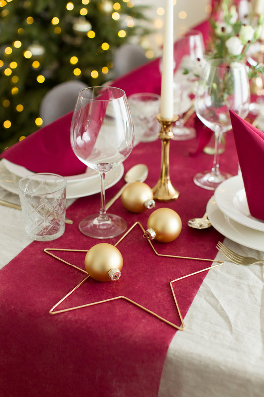 Kommt wieder reinVlies Tischläufer, Bordeauxrot, Sterne in Gold