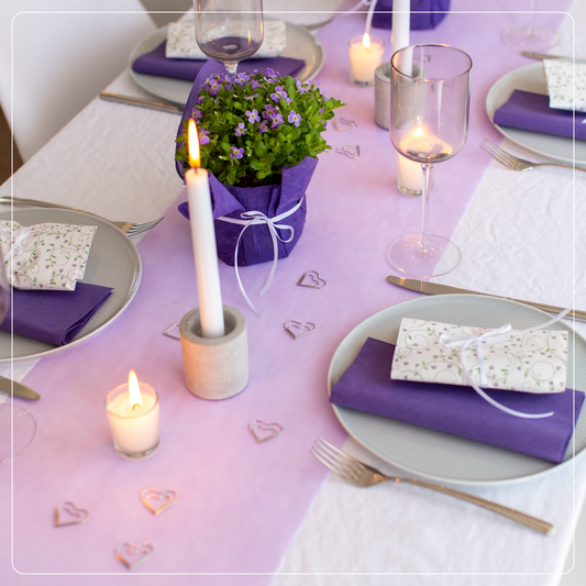 Mit dem richtigen Tischläufer wird deine Tischdeko zum Kinderspiel! Dekostoffe aus Vlies in vielen bunten Farben, metallisch glänzende Highlights auf Organza und luxeriöse Tischbänder in Samtoptik. Nutze die Filterfunktion, um das Material und die Farbe zu finden, die du suchst.