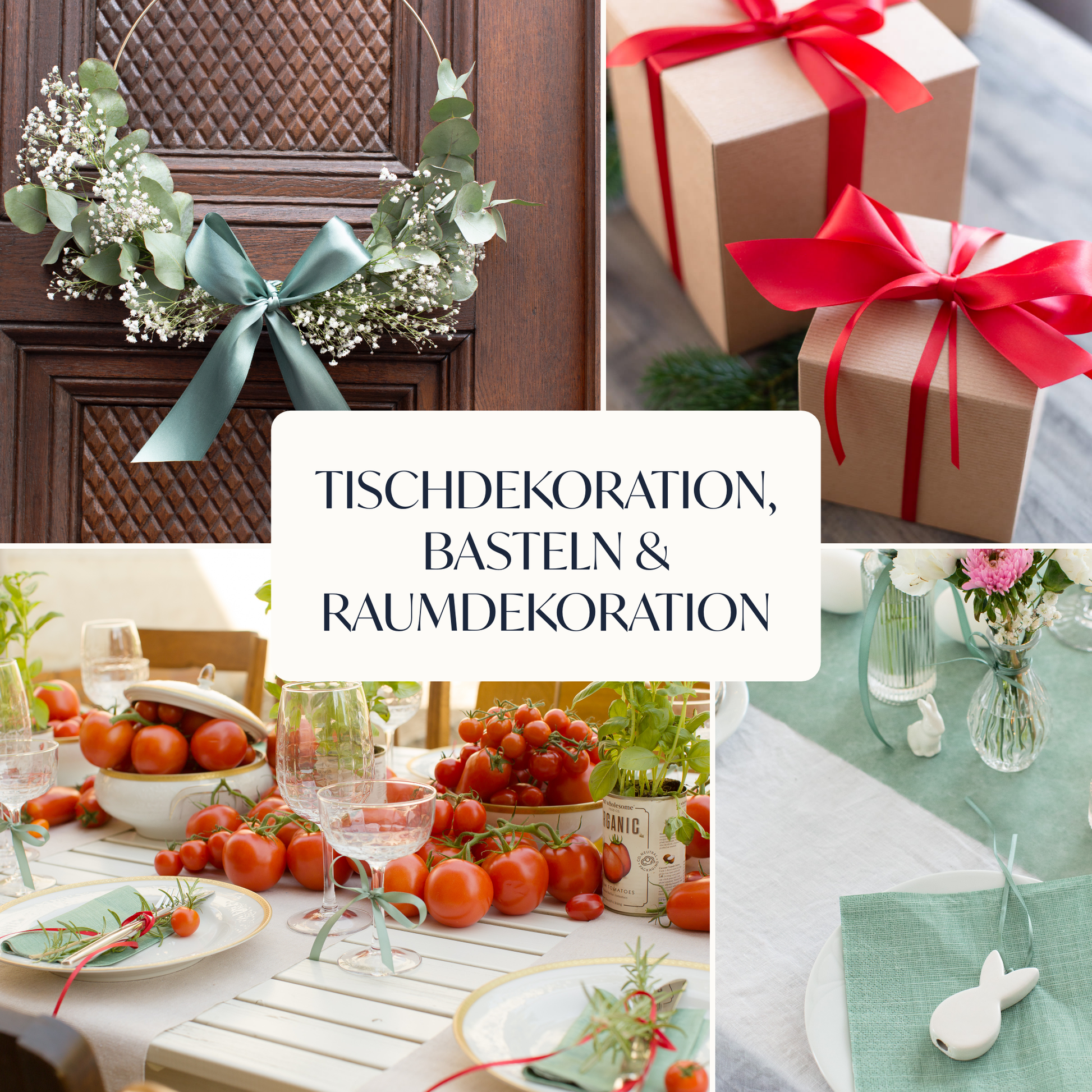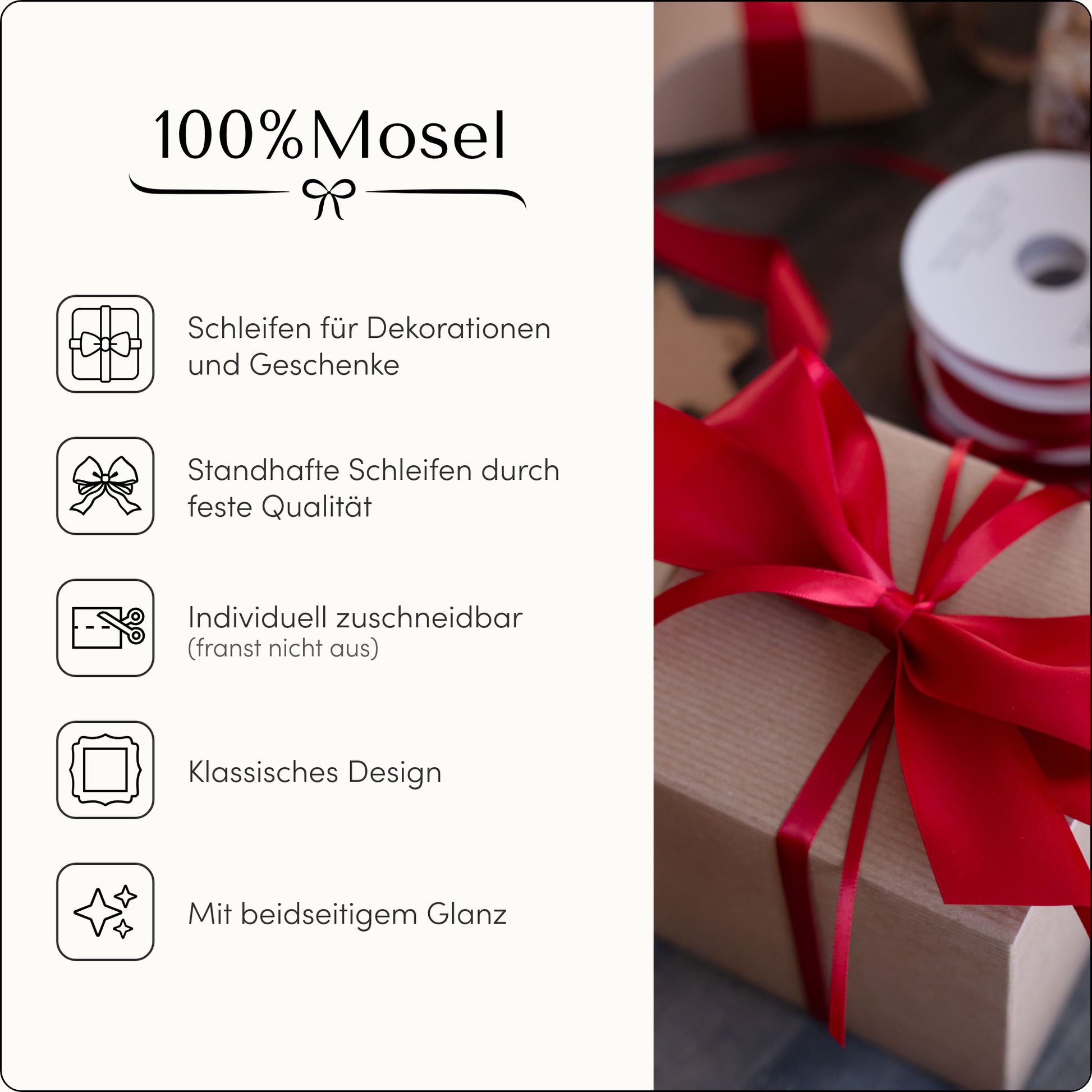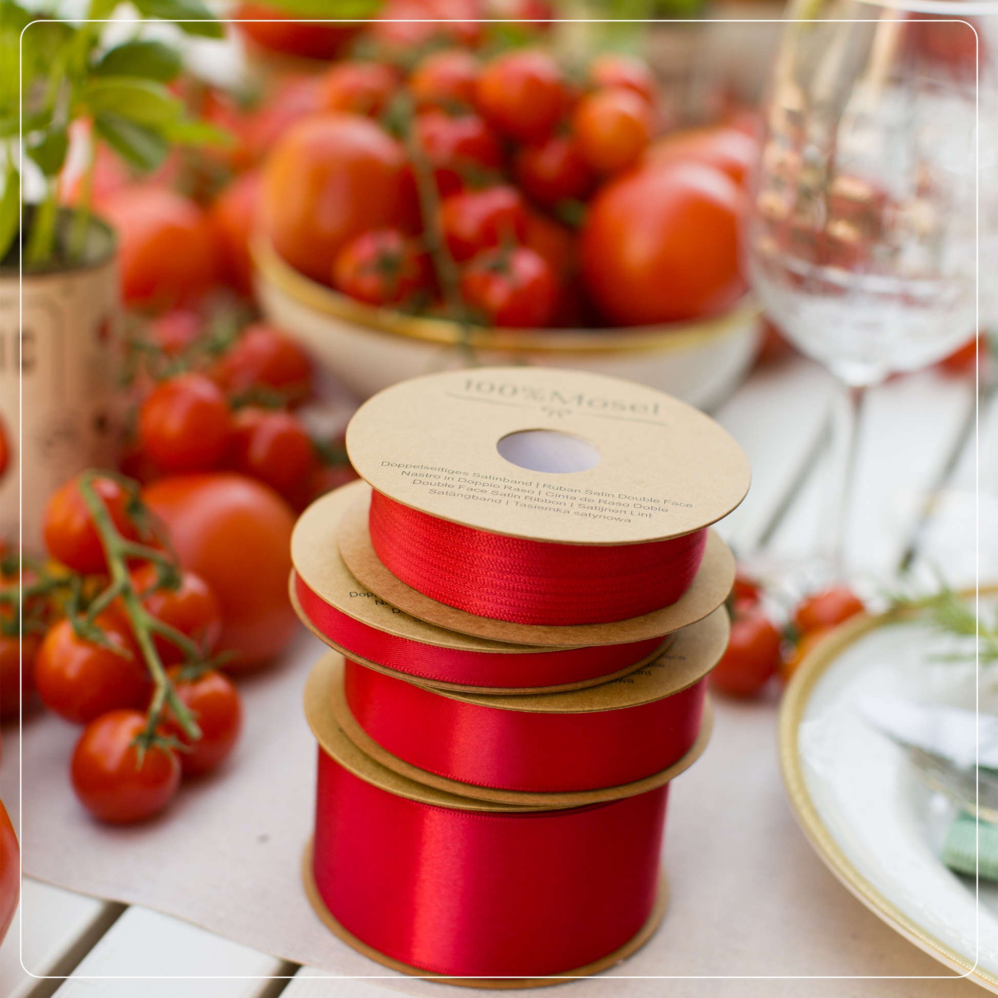 Die dicht gewebten 100%Mosel Satinbänder sind besonders fest und haben eine hohe Stabilität, so dass einmal gebundene Schleifen schön in Form bleiben, ganz ohne Drahtkante. Kombiniere verschiedene Breiten, um besonders wirkungsvolle Effekte zu erzielen! Das rote Band eignet sich besonders für: