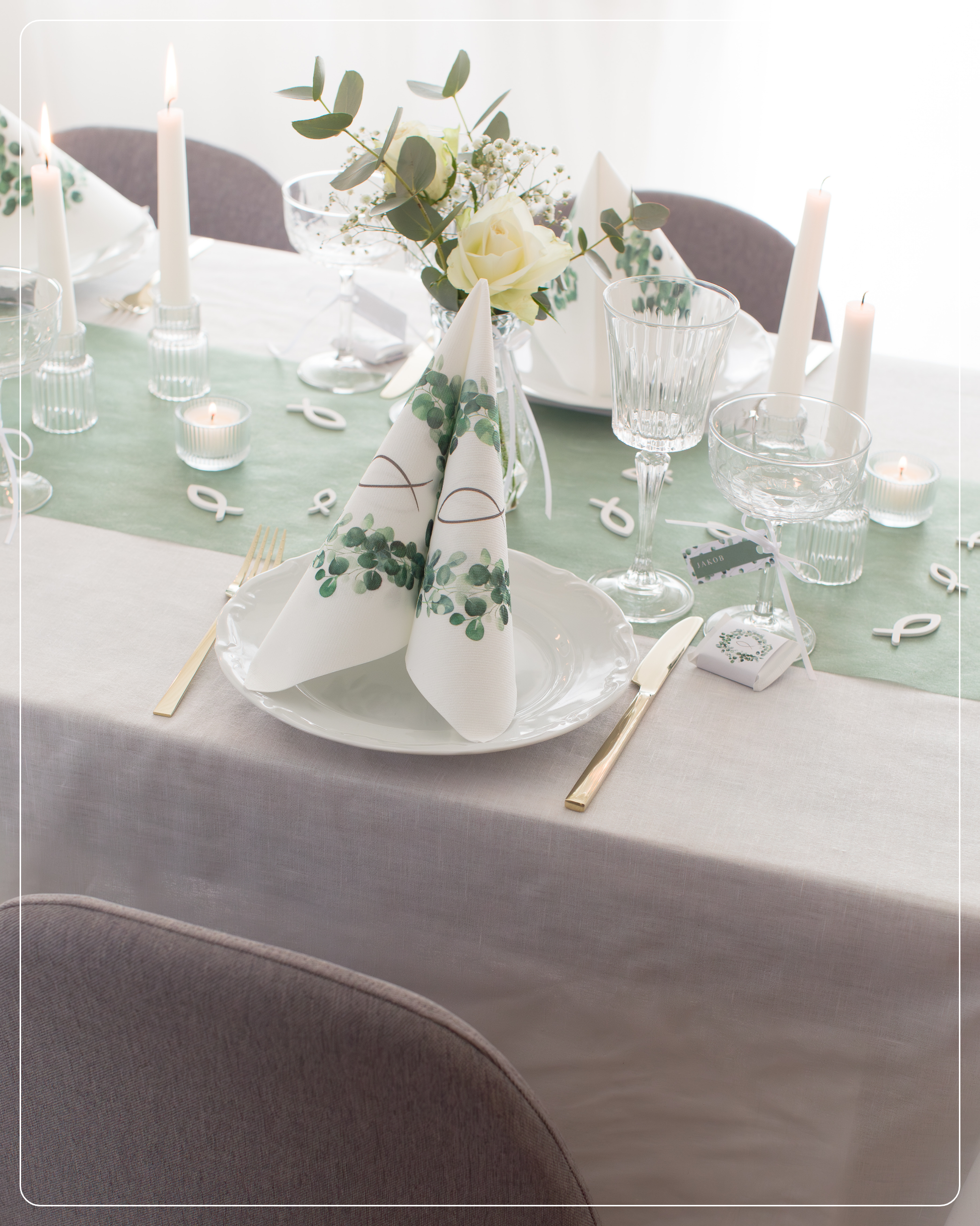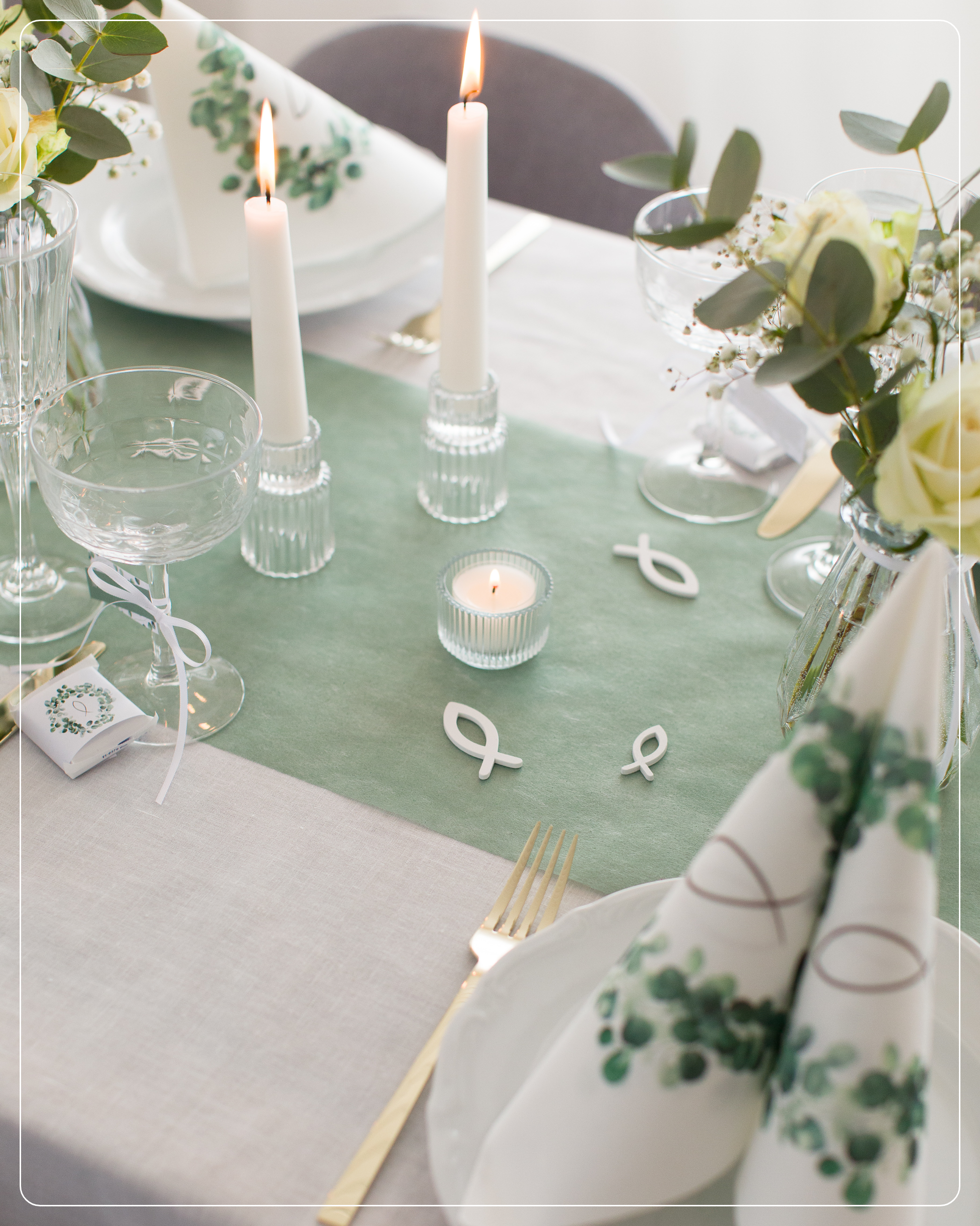 Ob zur Taufe, Kommunion, Konfirmation oder für eine maritime Sommerparty – unsere weißen Holzfische sind das ideale Detail für eine stilvolle Tischdekoration. Durch die deckende Lackierung und das natürliche Material wirken sie besonders edel und lassen sich perfekt mit den beliebten Vlies Tischläuferfarben Eukalyptus Grün, Rosa- oder Blautönen kombinieren.