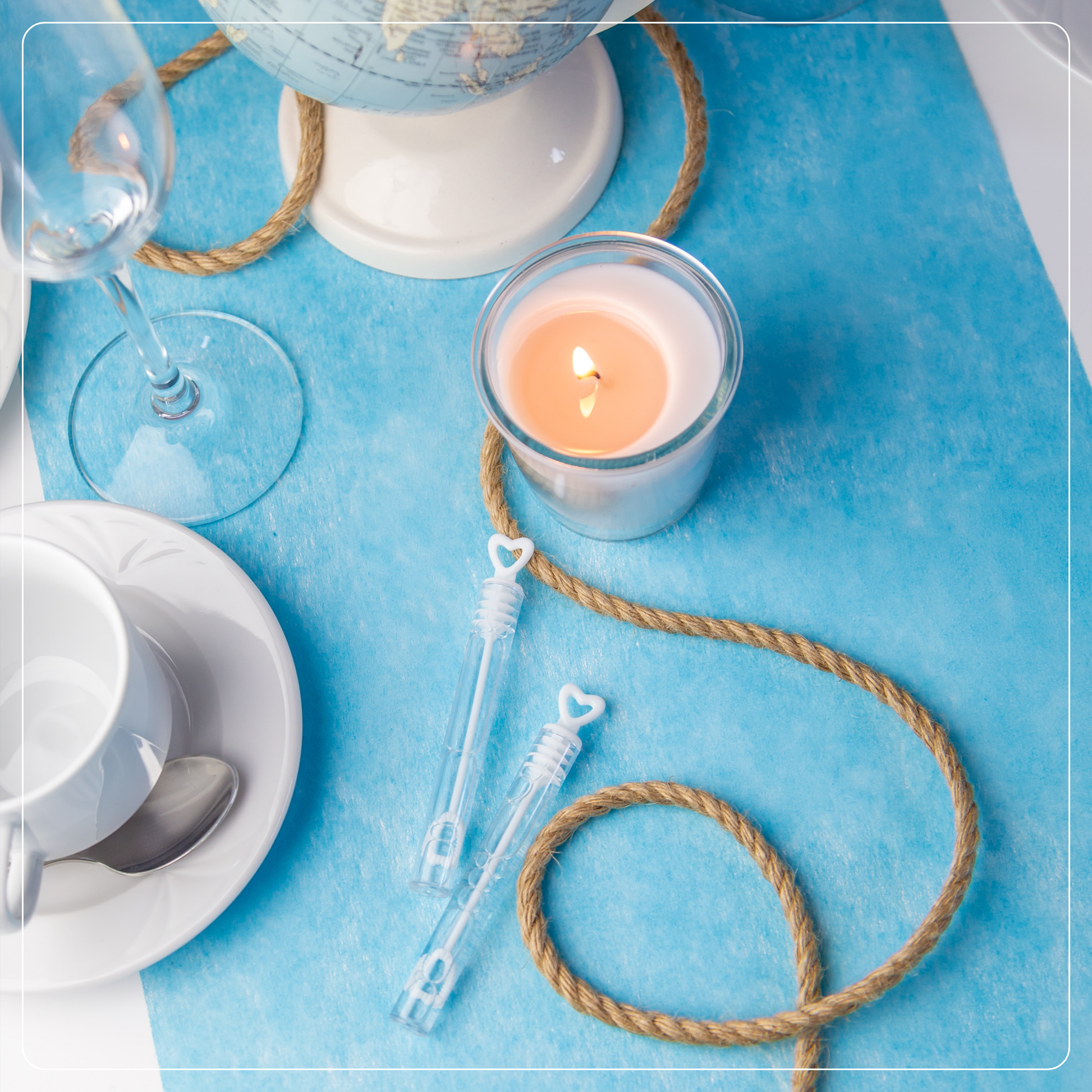 Unser Vlies Tischläufer in strahlendem Aqua-Blau verleiht deinen festlichen Anlässen eine erfrischende Eleganz. Der halbtransparente Einwegtischläufer ist die perfekte Basis, um mit deiner DIY Tischdeko unvergessliche Momente zu kreieren.