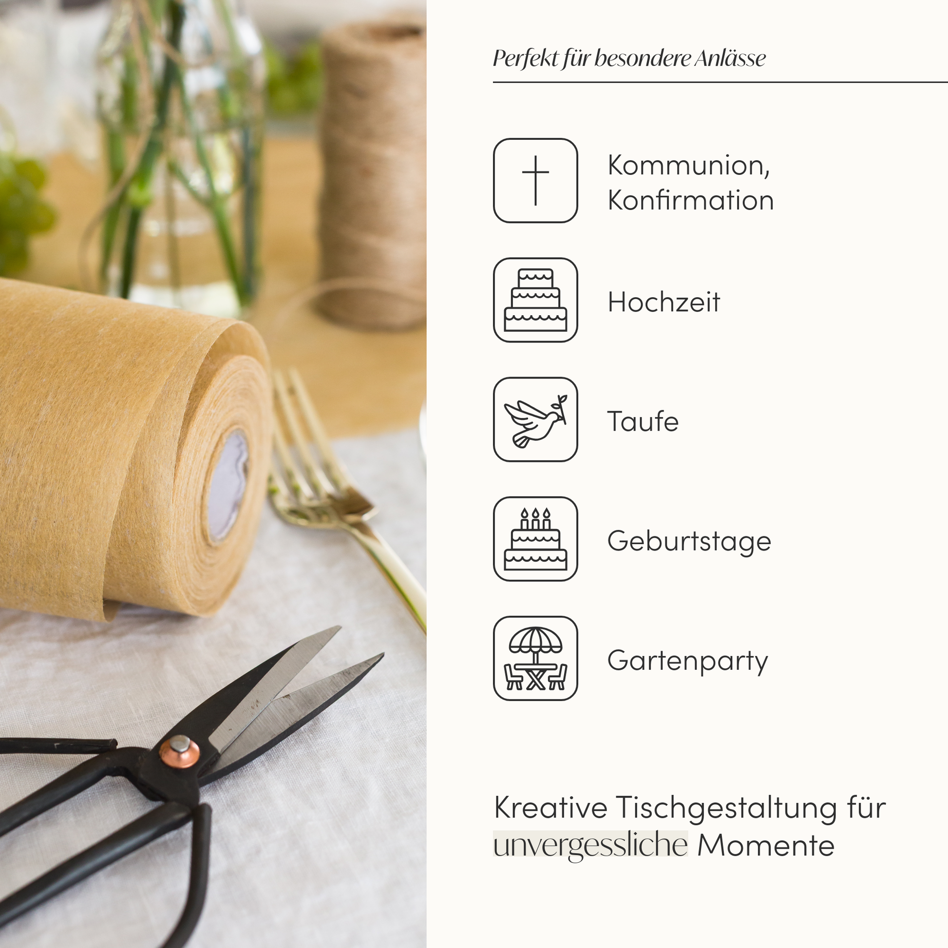 - Tischdekoration: Verwende ihn allein oder in Kombination mit einer Tischdecke.